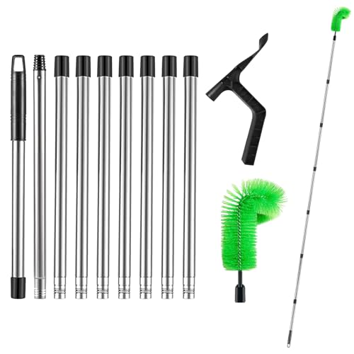 Der Teleskopstiel des Dachrinnenbürstens lässt sich frei einstellen und auf bis zu 350 Zentimeter ausziehen. Dies ermöglicht Ihnen, hohe Dachrinnen ohne Leiter zu reinigen.