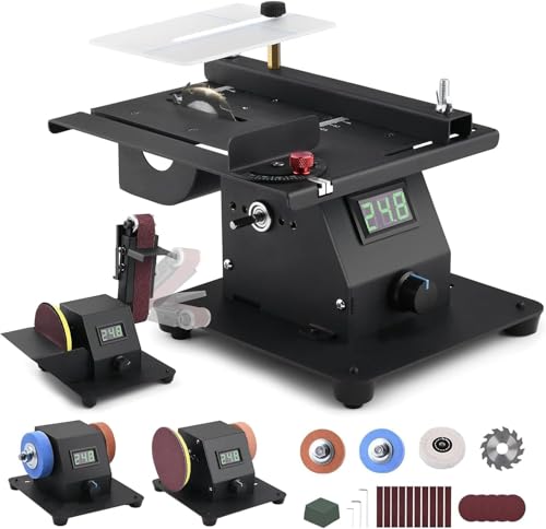 Unser 4-IN-1 Mini Tischkreissäge ist ein multifunktionales Gerät, das für verschiedene Aufgaben verwendet werden kann. Mit seiner Leistung von 350W und der LED-Voltanzeige ist es ideal für Holzschleifen, Schneiden und Polieren.