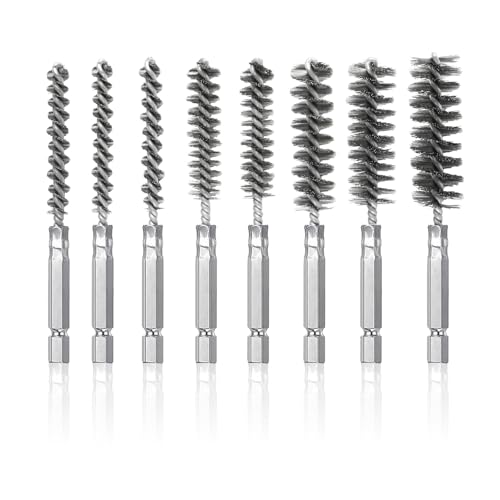 8 Stück Drahtbürste Bohrmaschine, mit Sechskantstange Edelstahl-Lochbürste, Zylinderbürste für Bohrmaschine Polier Schleifen Entrosten Entgraten,Verschiedene Größen Zylinder Drahtbürste