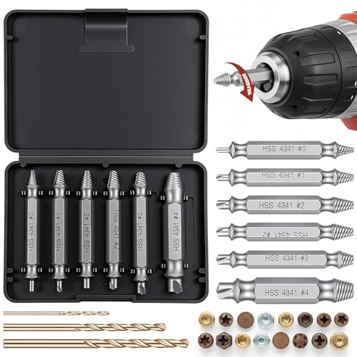Das 9-teilige HSS 4341 Schraubenausdreher Set enthält 6 Schrauben Entferner in verschiedenen Größen (Nr. 0, Nr. 1, Nr. 2, Nr. 3, Nr. 4) und 3 Hartmetall-Spiralbohrer(2,0 mm, 3,0 mm, 3,5 mm) zum einfachen Entfernen verschiedener abgenutzter Schrauben.