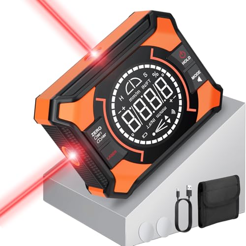 Der Winkelmesser verfügt über eine 10m Kreuzlinien-Laser mit hoher Auflösung und bietet Ihnen vier verschiedene Einheiten (Grad, Prozentsatz, mm/m, Zoll/Fuß) für verschiedene Anwendungen. Der Magnet auf der Rückseite ermöglicht einen sicheren Halt an Stahlträgern, Rohren oder Sägeblättern.