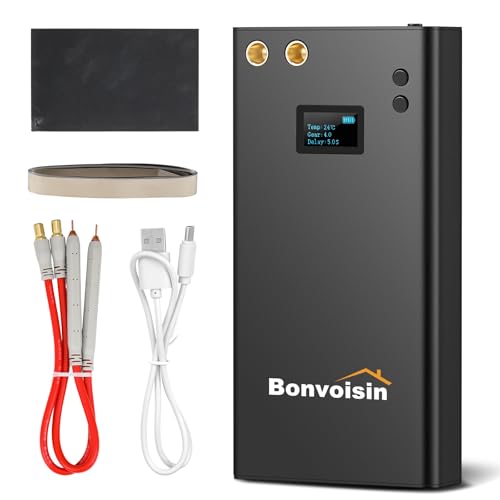 Bonvoisin Akku Punktschweißgerät, 11000mAh Ladebarer Akku, 70 Gänge Einstellbar, für 0,1-0,3mm dicke Eisen/Edelstahl/Nickel-Streifen, mit 40cm-Schweißstift und 2m Nickelblech (EU)