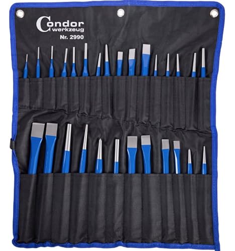 Unser Condor Werkzeug 2990 ist ein umfangreiches Set an Meißeln und Durchtreibern, ideal für verschiedene Anwendungen wie Stemmen, Durchschlagen oder Ankörnen. Die hochwertigen Werkzeuge bestehen aus Chrom-Vanadium-Stahl und sind thermisch gehärtet und vergütet.