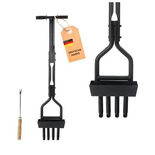 Das Dönges Rasenlütter manuell ist ein hochwertiger Hand-Aerifizierer, der ideal für die Reduzierung von Moos und die Verbesserung der Nährstoffaufnahme in Ihrem Rasengrund geeignet ist. Die vier robusten Zinken sind aus Stahl gefertigt und dringen tief in den Boden ein, um sogar harte Erdschichten zu lockern.