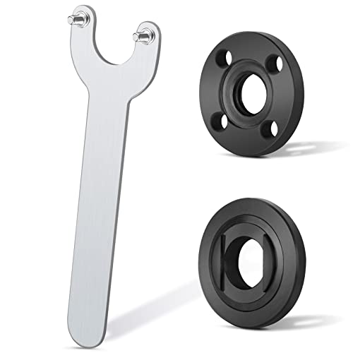 Das Set enthält ein Mutter-Flansch-Winkelschleiferpaar sowie eine Schraubenschlüssel. Diese sind alle aus hochwertigem Metall gefertigt und bieten eine lange Haltbarkeit.