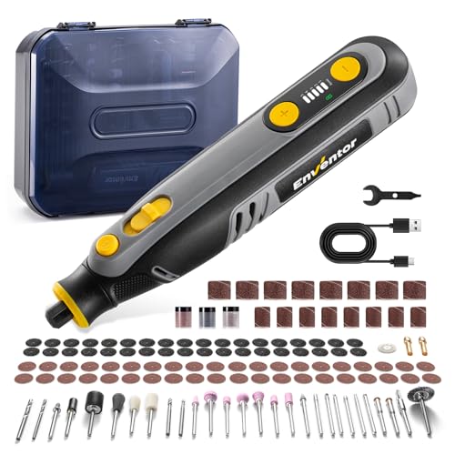 Der Enventor 8V Mini Multifunktionswerkzeug Akku ist das ultimative Werkzeug für alle, die selbständig arbeiten. Mit seiner leistungsstarken Motor und 5 variablen Geschwindigkeiten bietet er eine schnelle Drehzahl von 5000-30000 RPM zum mühelosen Schnitzen, Schleifen, Polieren, Bohren und Schneiden verschiedener Materialien.