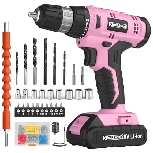 FADAKWALT Akkuschrauber Akku Bohrschrauber Akkubohrer Akku Bohrmaschine 20V, 30 Nm, 21+1 Drehmomentstufen, 60-tlg Zubehör Set, 2-Gang Akkuschrauber Klein mit 2000 mAh Akku, LED, DIY (Rosa)