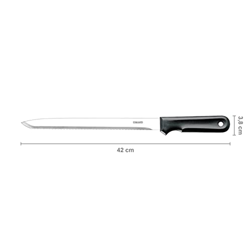 Der ergonomisch geformte Griff aus Kunststoff bietet eine angenehme Position der Hand und einen sicheren Fingerschutz, um Verletzungen zu vermeiden. Die Klinge aus rostfreiem Stahl garantiert eine hohe Langlebigkeit und ist leicht zu reinigen.