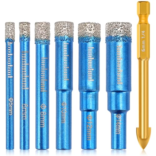 Unsere Diamantbohrer sind auf die Bohrung von harten Materialien wie Keramik, Granit und Glas spezialisiert. Mit unseren 7 Bohrern in verschiedenen Größen (5mm, 6mm, 8mm, 10mm, 12mm und 14mm) und einem 6mm Hartmetallbohrer haben Sie alles, was Sie für eine perfekte Arbeitsfläche benötigen.