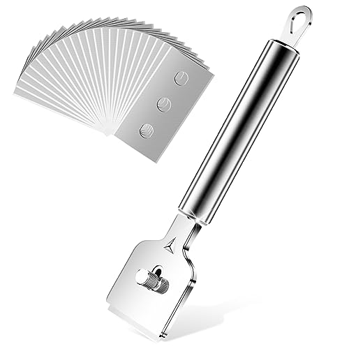 Das hochwertige Metall des Flintronic Ceranfeldschabers ermöglicht eine effektive Reinigung von Backofen, Induktionskochfeld, Herd und anderen Oberflächen. Mit den 24 enthaltenen Ersatzklingen können Sie leicht verbrannte Krusten, Milch, Wachs, Rost und andere Schäden entfernen.