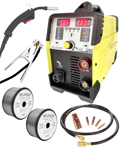 Fülldrahtset WELDINGER ME 180 mini MIG/MAG-Schweißgerät je 1x Fülldraht 0,6/0,9 mm/1kg Fülldrahtgasdüse Stromdüsen (NoGas Schweißen) 5 Jahre Garantie