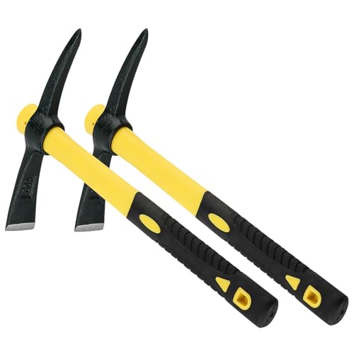 FUNSUEI 2 Stück 38cm Spitzhacke Garten mit Fiberglas Stiel und Geschmiedetem Stahl Kopf, Kreuzhacke Robust für Gartenarbeit