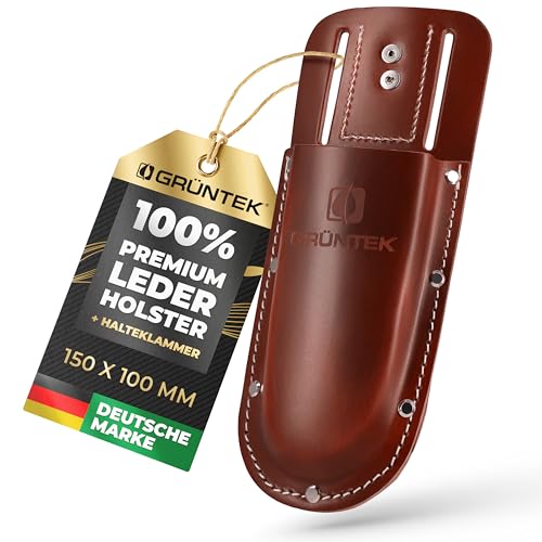 Das GRÜNTEK Premium Gartenscheren-Holster ist ein hochwertiges Etui aus Echt-Leder, das Ihre Schere sicher und bequem in der Nähe Ihres Gürtels trägt. Dank seiner ergonomischen Halteklammer und seiner praktischen Gürtel-Schlaufe bleibt das Holster immer an Ihrem Gürtel befestigt, sodass Ihre Gartenschere immer griffbereit ist.