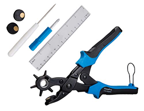 HimaPro Leder-Lochzange, drehbares Locheisen für Gürtel, Hundehalsbänder, Sättel, Schuhe, Uhrenarmbänder u.v.m. – Inklusive Messlineal, zwei Ersatz-Stanzplatten und Mini-Metallbohrer