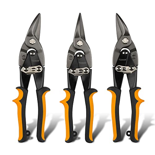 Hoteche Blechschere 10“/250mm 3Pcs Aviation Snips Metallschere Gerade Durchlaufblechschere aus Cr-V-Stahl – Hochleistungsschere für Handwerk