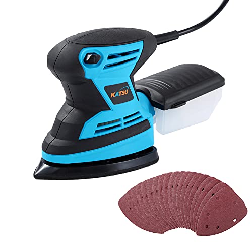 KATSU Multischleifer 200W 15500 RPM Deltaschleifer elektrischer Handflächenschleifer mit Staubsammler und 20 Stück Schleifpapier für Ecke Kante, Metal Holz 100174