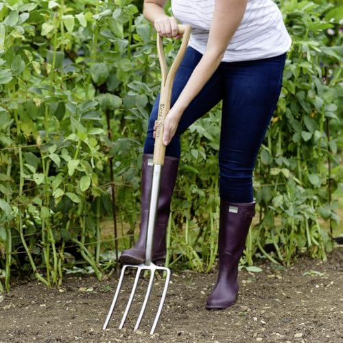 Hochwertige Gartengeräte von Kent & Stowe, perfekt für große Bodenflächen geeignet. Mit Edelstahl-Kopf und Esche-Stiel ist diese Spatengabel eine großartige Wahl für Ihre Gartenarbeit.