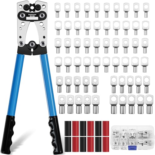 Koolcover Crimpzange Kabelschuhe Set,Groß Crimpwerkzeug,Hochleistungs-Crimper für Kabelschuhe,Rohrkabelschuh Zange,Crimpzange für Batteriekabel 6/10/16/25/35/50 mm² + 60stk (HX50B crimper+terminals)
