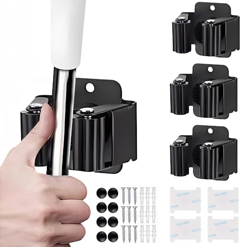 Der Besenhalter ist leicht zu montieren, dank des verbesserten blauenblattförmigen Zahnrad Anti Rutsch Design aus Silikon. Dieser Anpassungseffekt ermöglicht es Ihnen, Ihre Geräte schnell und einfach zu ordnen.