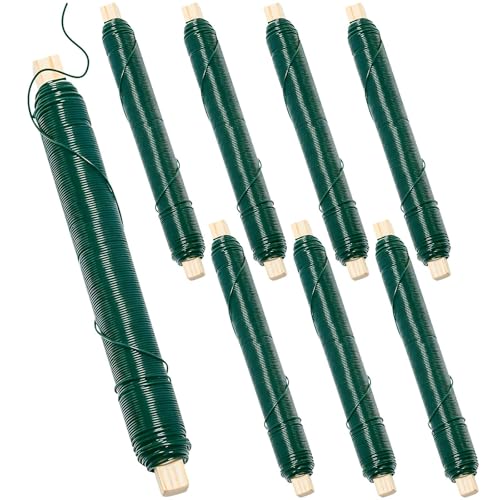 Leyrens 8 Stück Draht Wickeldraht grün Bindedraht, Pflanzendraht ummantelt, Draht Zum Basteln, Wickeldraht auf Holzwickel zur Befestigung von Blumen und Pflanzen, Bindedraht Garten
