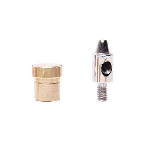 Die Messingamboss des Werkzeugs sorgt für eine genaue und präzise Arbeit, während die Federschlagpresse auch für dünne Stoffe geeignet ist. Unser Lochwerkzeug passt in alle gängigen Handpressen, Spindelpressen oder Ösenpressen mit ein Gewinde (6,35 mm) oben und 12 mm Bohrungs-Durchmesser unten.