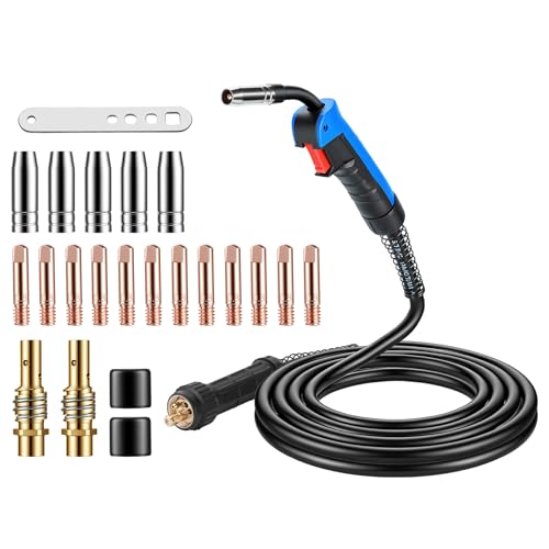 Das MB15AK MIG/MAG Schweißbrenner Set ist ein umfassendes Kit, das everything bietet, was Sie für Ihre Schweißarbeiten benötigen. Der Brenner selbst ist mit einem 4m-Schlauchpaket und Euro-Anschluss ausgestattet, der universell kompatibel ist und sofort einsatzbereit ist.