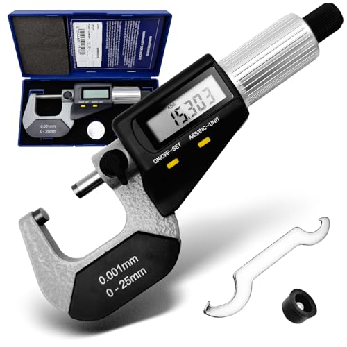 Diese digitale Bügelmessschraube nach DIN 863 ist ideal für vielseitige Messaufgaben. Sie bietet eine hohe Präzision mit einem Messbereich von 0-25 mm und ein präzises Messgerät, das auf einer HM-Messfläche basiert.