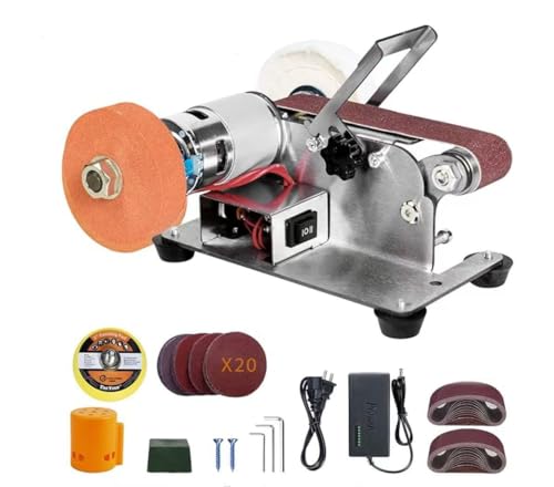 Unser Set enthält verschiedene Aufsätze, einschließlich Schleifbands und Schleifscheiben, die zwischen installiert werden können. Mit der Installation einer Schleifscheibe oder eines Polierrades verwandelt sich unser Mini-Bandschleifer in eine kleine Tischschleifmaschine.