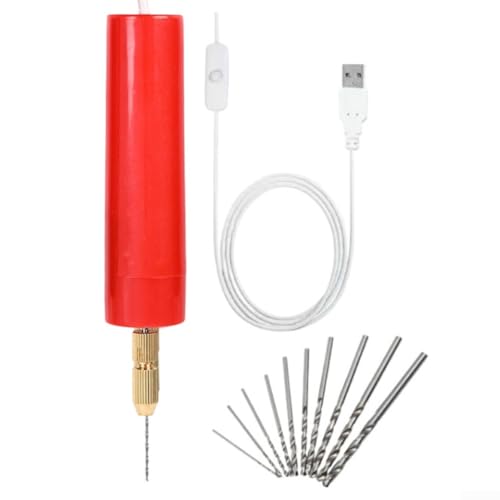 Mini-Bohrmaschine mit 13 Bits für Harz, Schmuck, Polymerton, Holz, Metall, Acryl und Papierhandwerk mit kompakter Größe und praktischem Spannbereich von 0,7–1,2 mm (rot)