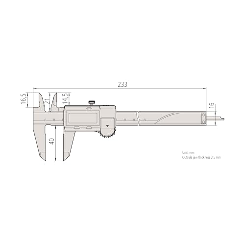 Das Instrument bietet eine hohe Genauigkeit, mit einer Toleranz von nur 20 µm. Die Skalierung ist sehr fein, mit 0,01 cm und die Oberfläche ist glatt und komfortabel. Der Schieber kann ohne Einschalten kalibriert werden.