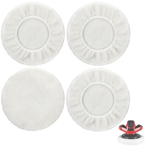 Poliermaschine, Polieraufsatz Akkuschrauber, 4 Stück Polierhauben 250mm Polierpads, Lammwolle Polierscheiben für 220mm-250mm Poliermaschinen, für Autolackpflege, Wachspolieren Poliermaschine
