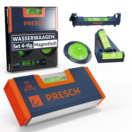 • Magnetische Stabilität: Die Mini Wasserwaage, die Kreuzwasserwaage und die Dosenlibelle sind jeweils auf der Rück- oder Unterseite magnetisch und bieten so sicheren Halt