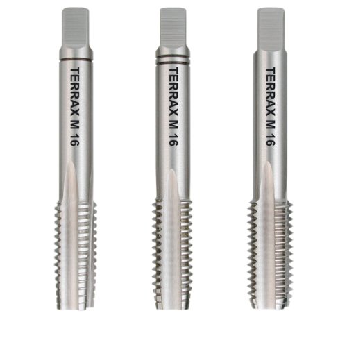 Der Ruko Terrax Handgewindebohrer Satz ist ein hochwertiges Werkzeug, das zum Bohren von Gewinden mit einer M16-Dimension nach DIN ISO 13 verwendet wird.