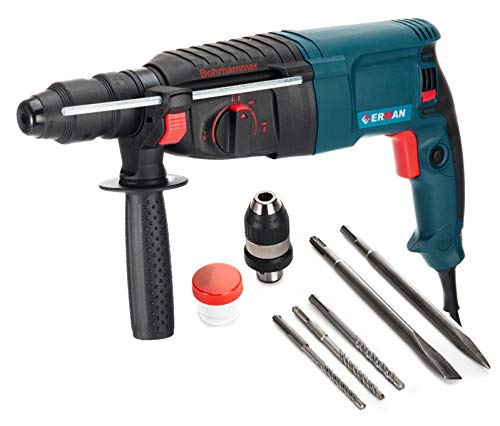 Das Set enthält eine Bohrmaschine, einen Schlagbohrer und weitere Bohrer. Die Bohrmaschine ist mit einem robusten Motor ausgestattet, der auch bei schweren Belastungen nicht versagt.