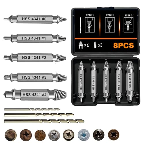 Das Schraubenausdreher Set von Starward ist ein umfassendes Werkzeugset, das alle gängigen Schraubengrößen abdeckt. Es besteht aus fünf Schraubenausdrehern (#0, #1, #2, #3, #4) aus HSS 4341-Schnellarbeitsstahl sowie drei HSS 4341-Spiralbohrern (2,0 mm, 3,0 mm, 3,5 mm).