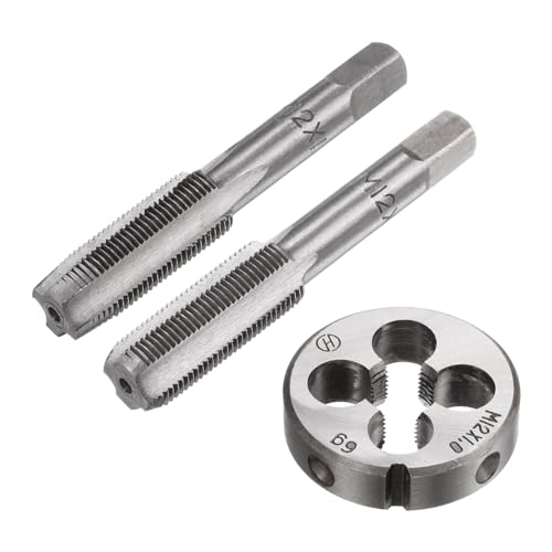 Das sourcing map 3-teilige metrische Handgewindebohrer- und Schneideisen-Sets besteht aus einem Kegel-Gewindeschleifer, einem Bodengewindeschleifer und einer runden Matrize. Diese Werkzeuge sind ideal für die Reparatur von Metallteilen in verschiedenen Größen.