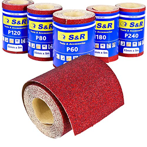 Das S&R Schleifpapierrollen Set ist ein ideales Werkzeug für professionelle Handwerker und anspruchsvolle Heimwerkerprojekte. Das Set besteht aus 5 Stück S&R Schleifpapier-Rollen mit einer Länge von jeweils 5 Metern und einer Breite von 93 Millimetern.
