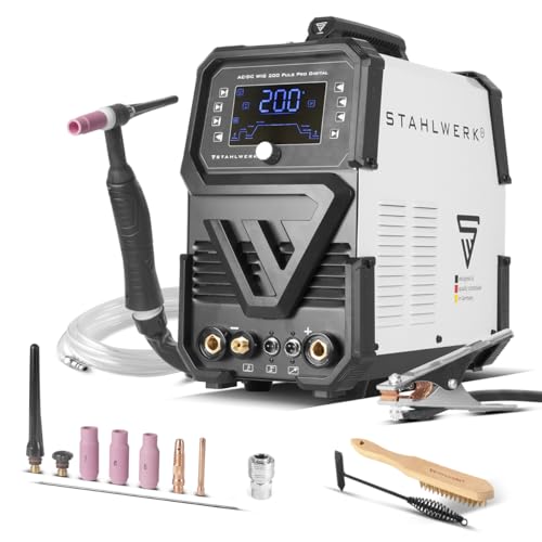 STAHLWERK Schutzgasschweißgerät AC/DC WIG 200 Puls Pro Digital – Kombi-Inverter mit 200 A, MMA-Funktion (E-Hand/ARC), Puls- & Spot-Funktion, Jobspeicher, Hotstart, Anti-Stick, für Alu & Dünnblech