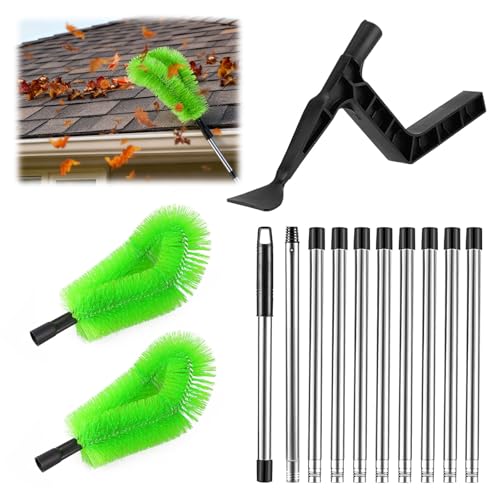 Außerdem sind die Bürstenköpfe leicht zu reinigen und austauschen. Mit 2 austauschbaren Bürstenköpfen (hart für groben Schmutz, weich für Staub) ist dieses Set ideal für die regelmäßige Dachrinnenreinigung.