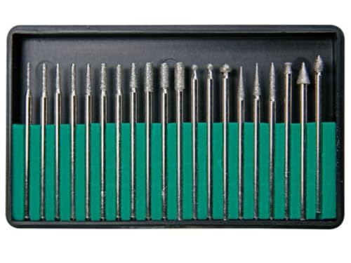 Das Set enthält 20 Stück Diamantfräser, die sich leicht zu transportieren und zu lagern lassen. Ob du in deiner Werkstatt oder an verschiedenen Projekten arbeitest – mit diesem Set bist du immer und überall bereit für präzisionsgerechte Bearbeitung.