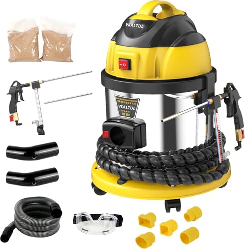Die Sandstrahlmaschine von VKALTUL ist mit einem 1200-Watt-Motor ausgestattet, der eine kraftvolle Saugkraft entwickelt. Der externe Luftkompressor sorgt für ein effizientes Sandstrahlen und verbessert die Reinigungseffizienz.
