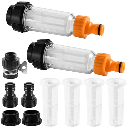 Das Wasserfilter Gartenschlauch Set besteht aus zwei 3/4-Zoll-Wasser-Vorfiltern und ist ideal für die Reinigung von Hochdruckreinigern, Wohnmobilen und Gartenpumpen geeignet.