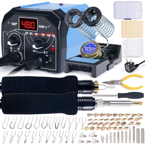 Das WEP 939D-II 2-in-1 Brandmalkolben Set ist ein umfangreiches Tool für alle, die sich für die Kunst der Brandmalerei begeistern. Mit seinem 86-teiligen Set bietet es eine Vielzahl von Möglichkeiten, Ihre Kreationen zu gestalten.