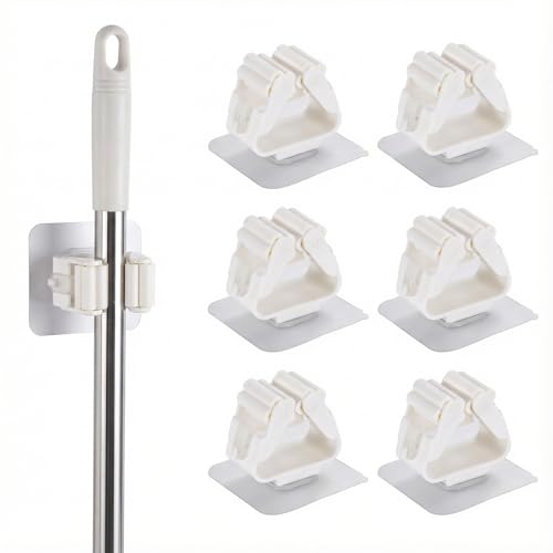 Der Lieferumfang umfasst 6 selbstklebende Mopphalter für den Innenbereich. Der Besenhalter kann nicht nur Reinigungsmittel, Küchenutensilien, Badezimmerzubehör organisieren, sondern kann auch in Flure Haken, hängende Toilettenbrunnen und andere kleine Gegenstände verwendet werden.