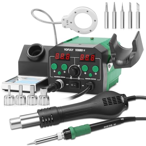 Die Yofuly Heißluft-Lötstation bietet Ihnen über mehrere Befestigungspunkte, eine 5-fache Lupe und ein LED-Licht. Mit den 2 helfenden Händen können Sie Ihre Leiterplatte in verschiedenen Winkeln halten.